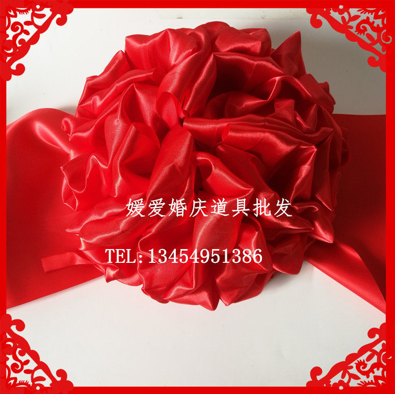 特价红绣球婚中式绸缎布花球新郎大红花婚庆道具批发厂家直销 特惠抢购 绸缎 绣球 中式 新郎 婚庆秋月梨